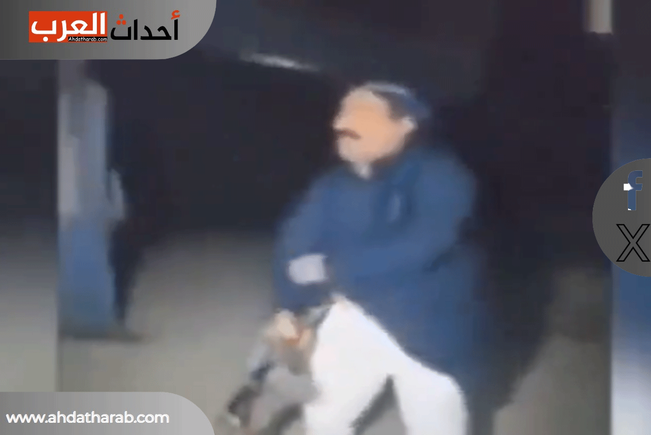 فيديو لرجل عراقي في الخمسينيات من عمره يقف في وسط الساحة وبيده بندقية آلية.