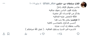 وفاة فلاح بن سلطان بن حثلين.. وهذا موعد الصلاة عليه ,