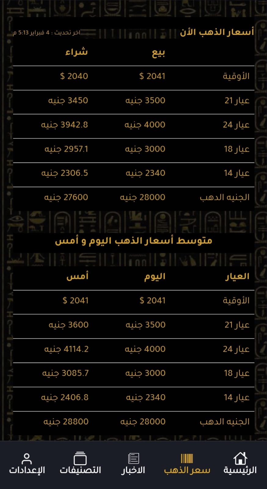 ننشر أسعار الذهب المحلية وفقا لآخر تحديث من شعبة الذهب والمجوهرات بالغرفة التجارية بالقاهرة.