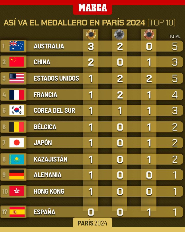 أستراليا تتصدر الترتيب العام للميداليات في أولمبياد باريس ,
