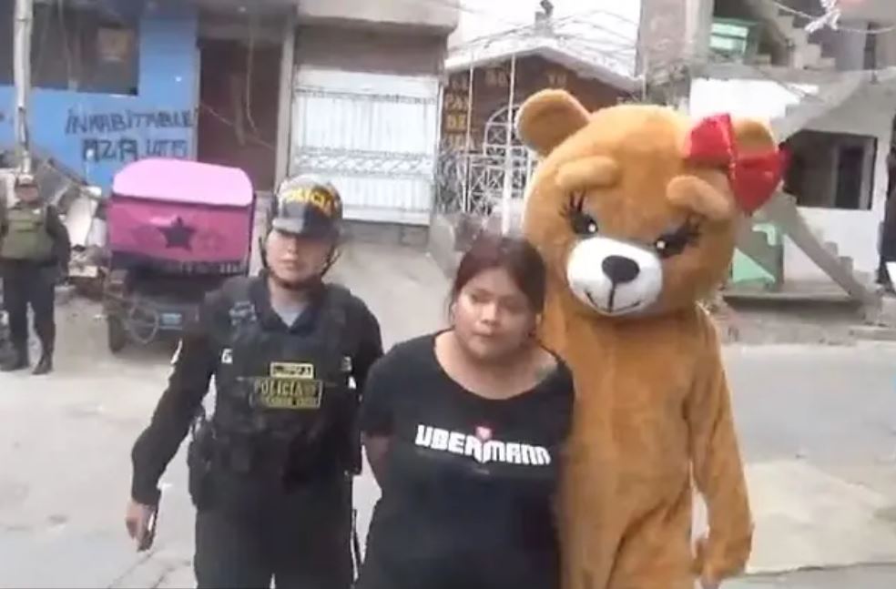 وأظهر مقطع فيديو ضابط الشرطة وهو يرتدي زي الدب الكامل، وهو يتجه إلى شقة امرأة يعتقد أنها تاجرة مخدرات في العاصمة ليما.