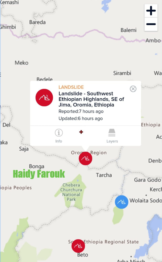 وأشارت المستشارة هايدي فاروق إلى أن الانهيارات الأرضية في إثيوبيا ظهرت في المرتفعات الإثيوبية جنوب غرب البلاد وتحديداً جنوب شرق جيما بولاية أوروميا بإثيوبيا، والتي ظهرت من خلال نموذج تقييم مخاطر الانهيارات الأرضية (LHASA).