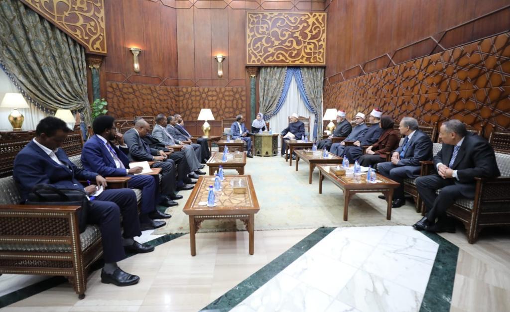 ومن جانبه، أكد فضيلة الإمام الأكبر أن الأزهر لن يتوانى عن دعم الشعب الصومالي وتلبية كافة احتياجاته العلمية والدعوية. ووجه فضيلته قيادات الأزهر بدراسة إنشاء لجنة مصغرة مع التمثيل الأزهري والصومالي لدراسة احتياجات الصومال. ومن المعاهد الأزهرية دورات تدريبية للأئمة والدعاة الصوماليين، وتوزيع المنح الأزهرية بما يتناسب مع تحديات الصومال الداخلية. ورحب الرئيس الصومالي بهذا الاقتراح، مؤكدا أنه خطوة مهمة في تنسيق الجهود المشتركة، وأنه سيعين ممثلا شخصيا لسيادته في هذه اللجنة إلى جانب مسؤولي السفارة الصومالية بالقاهرة.