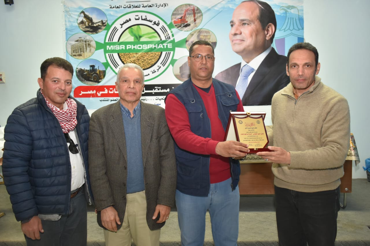 وفي ختام الزيارة قام وفد الكلية برئاسة الدكتور ابراهيم عبد الجيد عميد الكلية والدكتور حاتم بكري مدير وحدة الجودة بالكلية والمشرف العلمي العام على الرحلة العلمية بتسليم درع الكلية وشهادة تقدير للمهندس محمد عبد العظيم رئيس الشركة، وكان في استقباله نائباً له المهندس ثروت حجاب مدير عام الموقع الإلكتروني للشركة. كما تم تكريم المهندسين والجيولوجيين والكيميائيين والعاملين بالشركة تقديراً لجهودهم وإخلاصهم في أكبر موقع تعدين في مصر وأكبر منتج لخام الفوسفات.