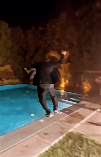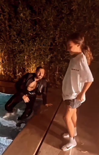 نشر الفنان تامر حسني فيديو لابنته تاليا وهي تقوم بمقلب به، حيث ظهرت وهي تدفعه إلى داخل حمام السباحة أثناء غنائها لأغنيته “معلمين” مع الفنان بهاء سلطان.