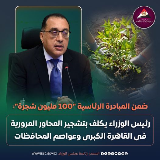 وأشار رئيس الوزراء إلى أنه سيتم استغلال أي قطعة أرض بالمحافظات لزراعة الأشجار، مشيرا إلى أن كل ذلك سيتم ضمن المبادرة الرئاسية “100 مليون شجرة”.