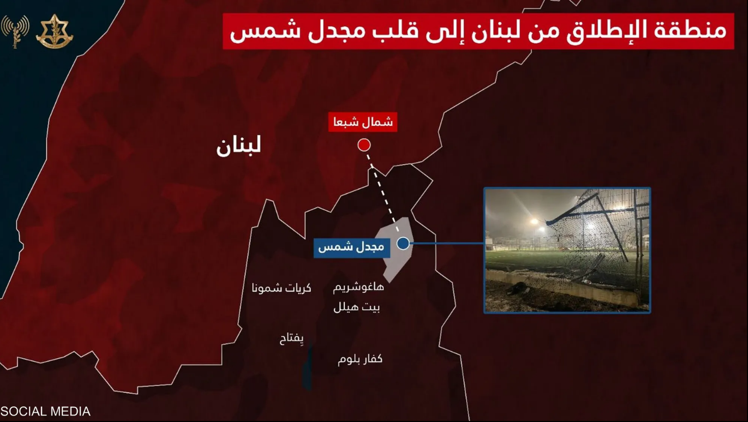 وفي وقت سابق من مساء السبت، نشر أدرعي صورة قال إنها تظهر مسار الصاروخ الذي سقط في مجدل شمس، وأضاف: “من تحليل الأنظمة العملياتية في جيش الدفاع الإسرائيلي، يبدو أن الصاروخ أطلق باتجاه مركز مجدل شمس من منطقة شمال قرية شبعا في جنوب لبنان. وبحسب معلومات استخباراتية موثوقة بحوزة جيش الدفاع الإسرائيلي، فإن حزب الله الإرهابي هو الذي يقف وراء الإطلاق”.