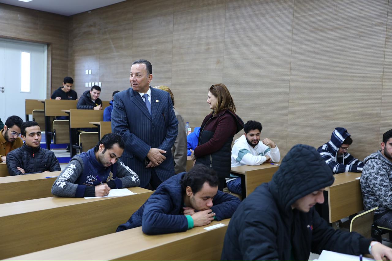 تفقد الدكتور معوض الخولي رئيس جامعة المنصورة الجديدة وعمداء ومدراء البرامج العلمية اللجان الامتحانية في اليوم الختامي لامتحانات الفصل الدراسي الأول لطلاب جامعة المنصورة الجديدة.