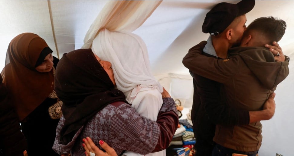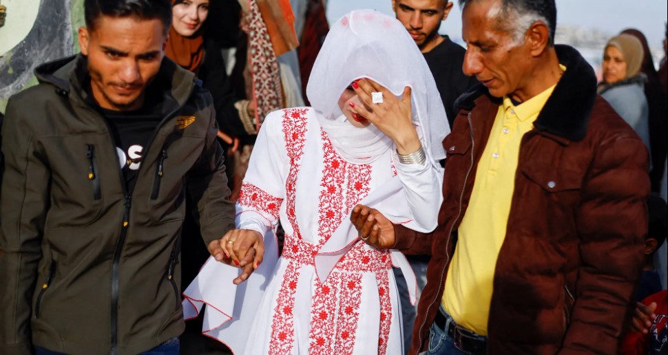 وقال العروسان إن منازل عائلتيهما دمرت جراء الغارات الجوية الإسرائيلية، وأن العائلتين فقدتا أقاربهما في القصف.