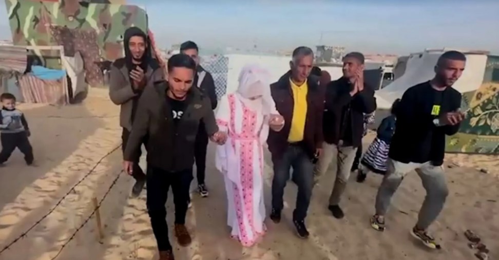 أراد الفلسطيني محمد الغندور إقامة حفل زفاف كبير لعروسه، لكن بعد اندلاع الحرب في غزة اضطروا إلى النزوح من منازلهم، وتزوجوا أخيرا هذا الأسبوع في مدينة الخيام حيث يقيمون الآن في رفح. بالقرب من الحدود مع مصر.