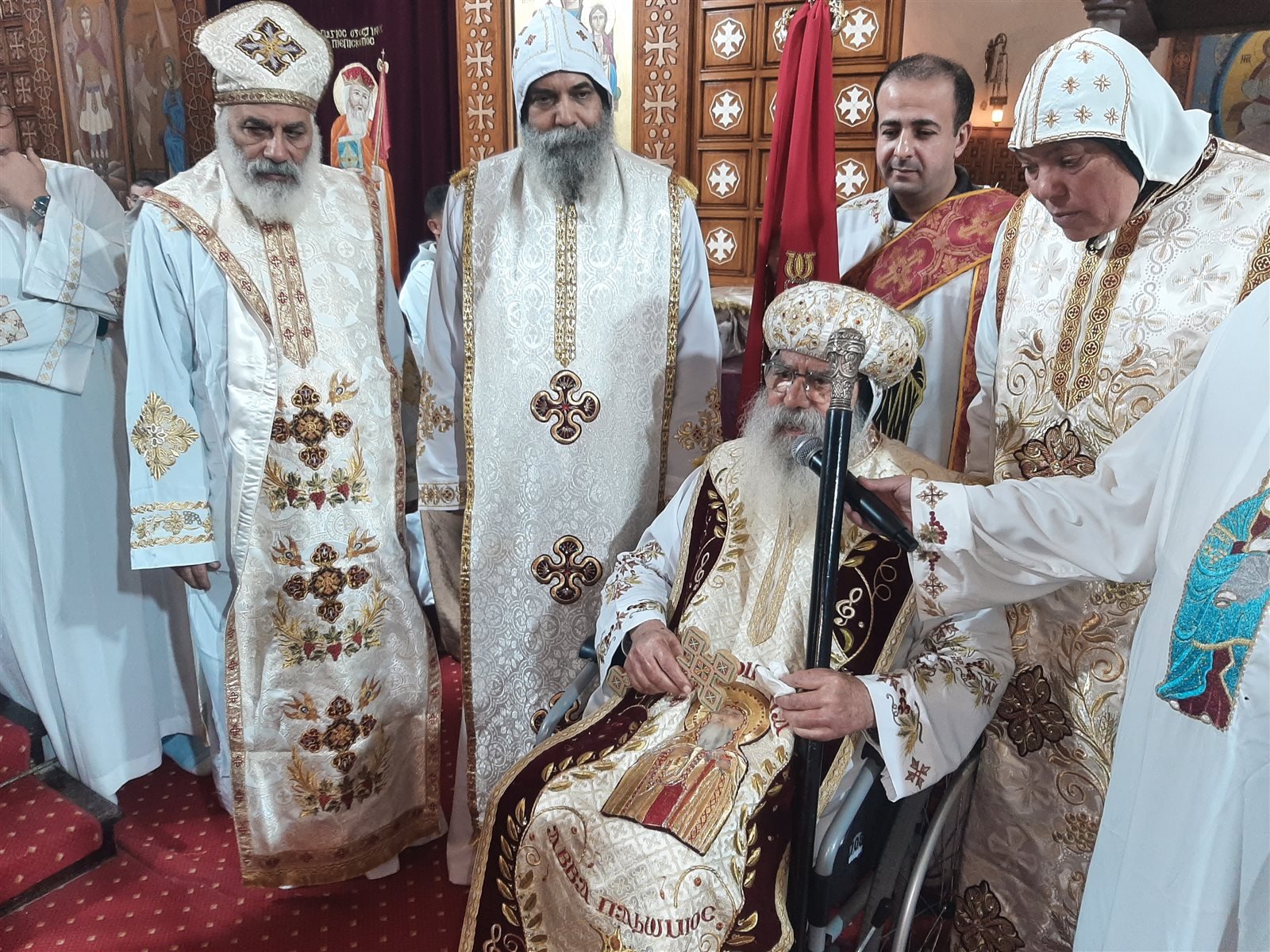 ونقل نيافة الأنبا باخوميوس، متروبوليت البحيرة وضواحيها، في كلمته، تهنئة المجمع المقدس برئاسة قداسة البابا تواضروس الثاني بابا الإسكندرية وبطريرك الكرازة المرقسية، إلى جميع الحضور وإلى الشعب. من محافظة البحيرة.