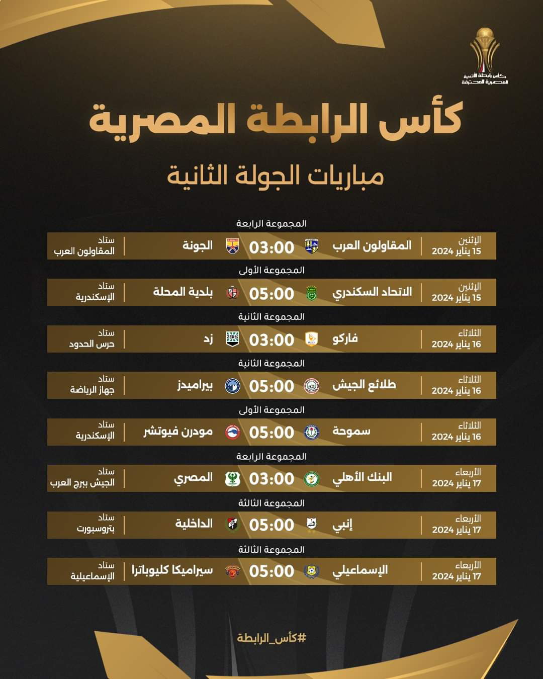المجموعة الرابعة: المصري – المقاولون العرب – البنك الوطني – الجونة.