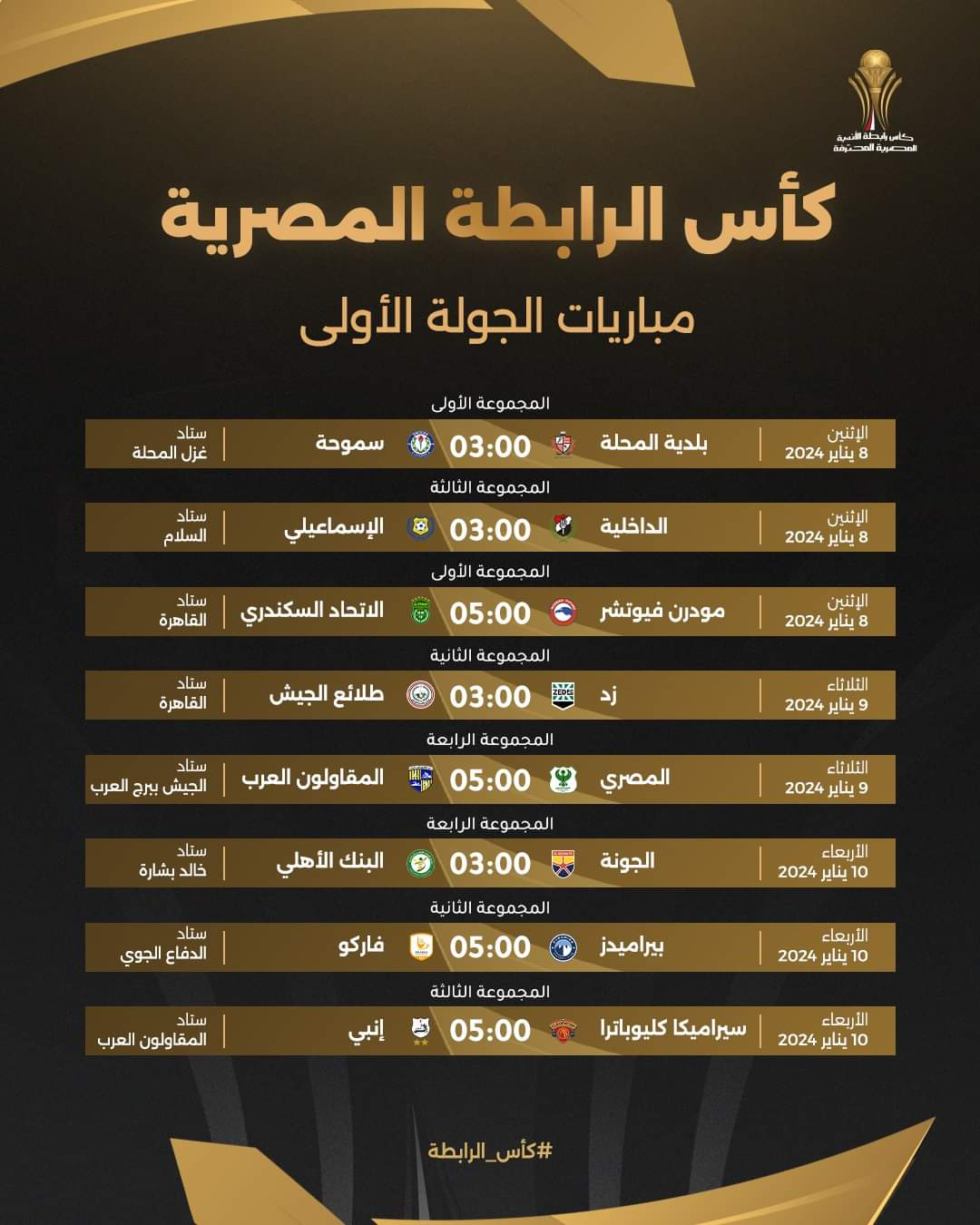 المجموعة الأولى: المستقبل الحديث – الاتحاد – سموحة – بلدية المحلة.