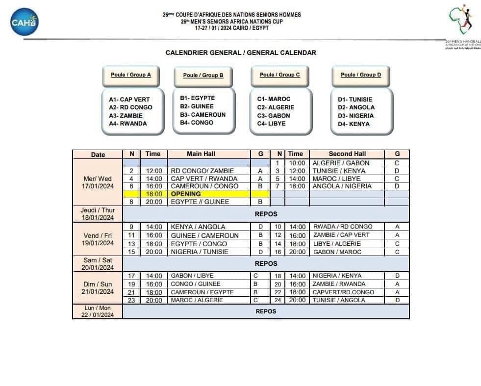 مجموعات بطولة كأس الأمم الأفريقية لكرة اليد 2024