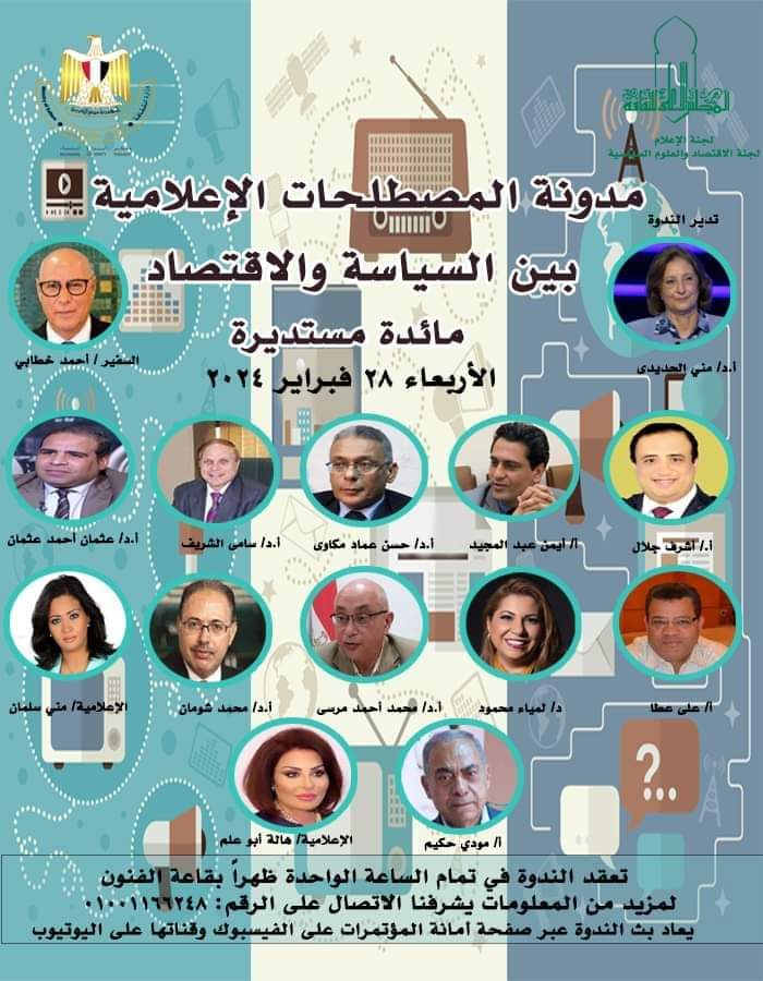 وتقام الطاولة بالتعاون مع لجنة الاقتصاد والعلوم السياسية برئاسة الدكتور محمد مرسي في الساعة الواحدة من ظهر يوم الأربعاء 28 فبراير 2024. بقاعة الفنون.