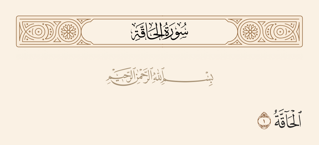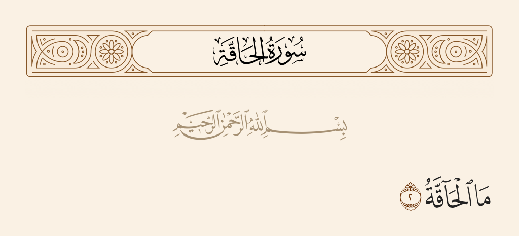 قال الشيخ محمد سيد طنطاوي: “الحاقة” مأخوذة من “الحق” إذا ثبت وجوده بما لا يدع مجالاً للشك، وهي من أسماء الساعة، وسميت الساعة بهذا الاسم لأن الأمور تثبت فيها وتتحقق، خلافاً لما زعمه الكفار من أنه لا بعث ولا حساب ولا جزاء، والهاء فيها هاء مؤنثة، فكلمة “الحاقة” صفة محذوفة، وهي “الحق” (الساعة التي لا محالة)، وقد تكون هاء مصدر، بوزن “فاعلة”، مثل “كذِّبة” للكذب، و”الباقية” للنجاة، و”التغية” للجور. وأصلها تاء (المَرَّة)، ولكن لما كان المراد بها المصدر، سقط (المَرَّة)، وصار لفظ (الحقة) معناه الحقيقة التي ثبت وقوعها.
