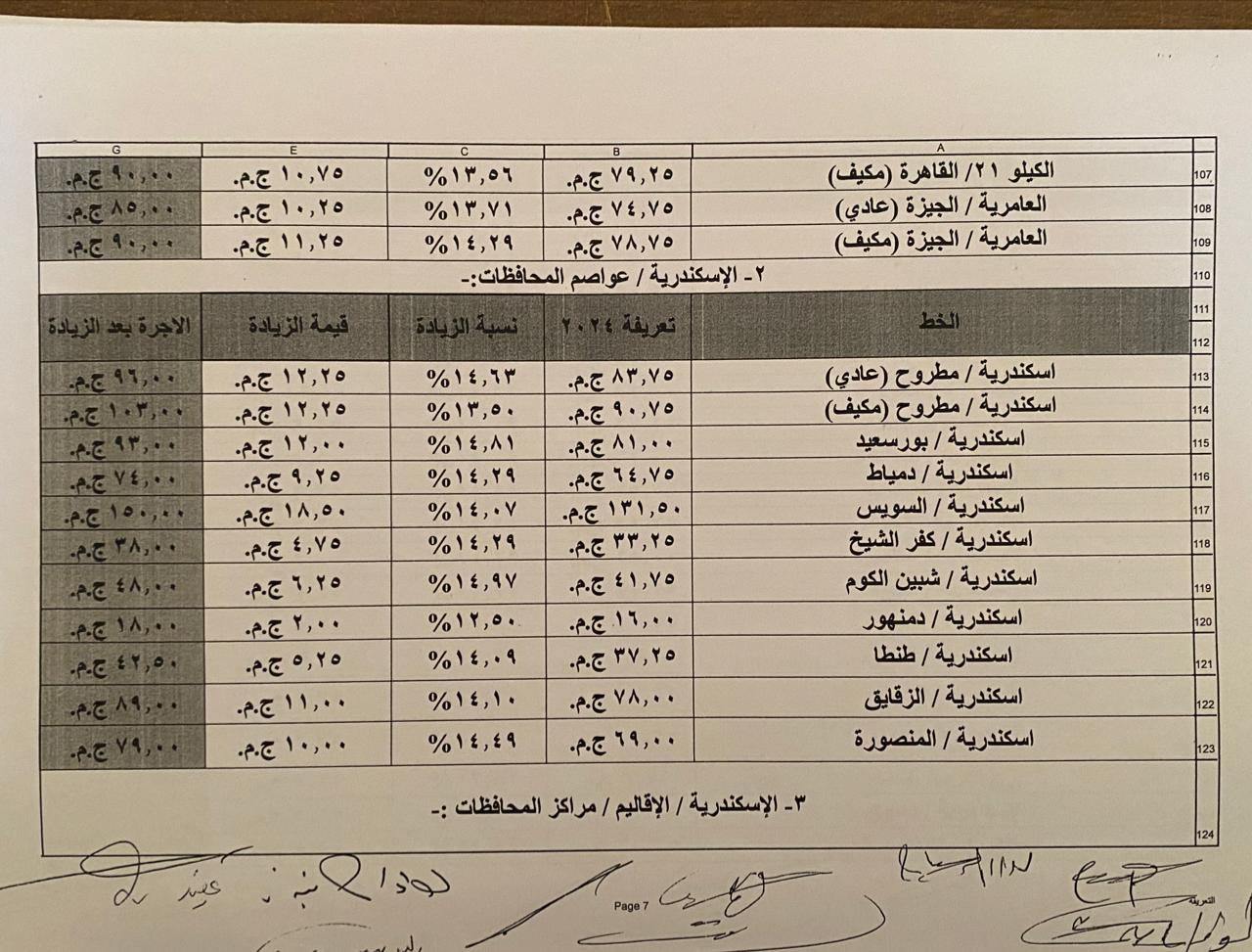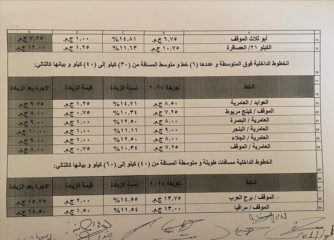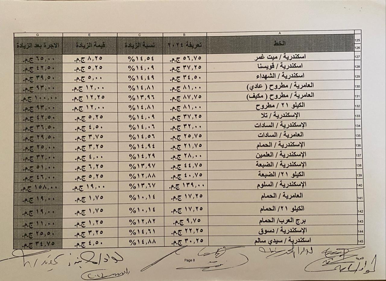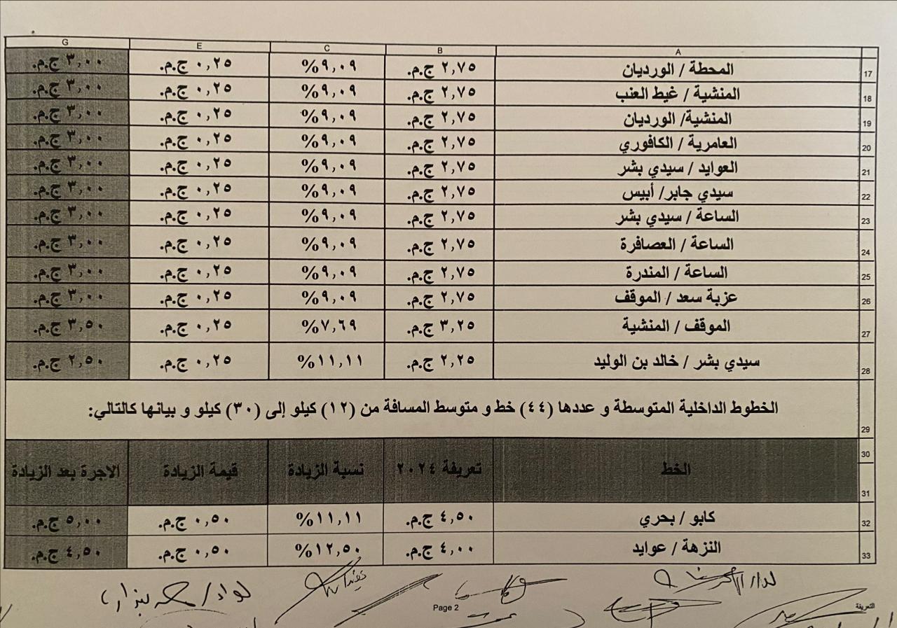 اعتمدت محافظة الإسكندرية التعريفة الجديدة لسيارات الأجرة للنقل الداخلي والخارجي ووسائل النقل العام بالمحافظة، المقدمة من مشروع محطات الركاب والانتظار، وسيتم تطبيقها اعتبارًا من تاريخ اعتمادها وفقًا للجداول المرفقة، وذلك في ضوء قرار لجنة التسعير التلقائي لأسعار المنتجات البترولية بوزارة البترول وحركة أسعار بعض المنتجات.
