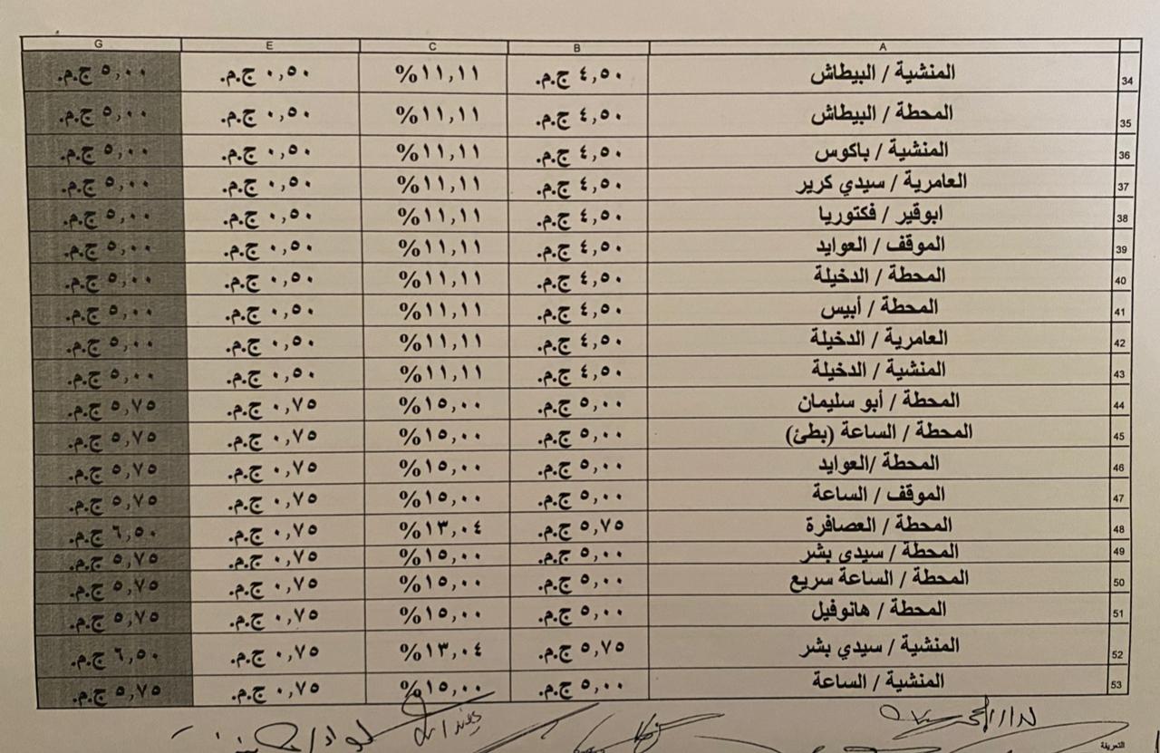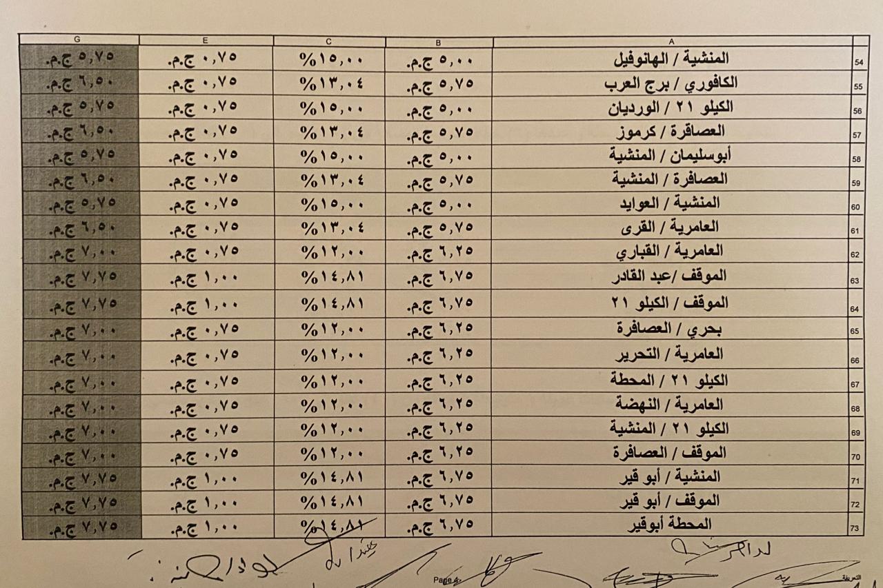 وجه محافظ الإسكندرية إدارة مشروع محطات الركاب والانتظار بالالتزام بنشر التعريفة الجديدة بالمحطات والمحطات المختلفة وتعليقها في مكان ظاهر، وإلزام سائق النقل بعمل ملصقات بالتعريفة الجديدة لكل خط سير.