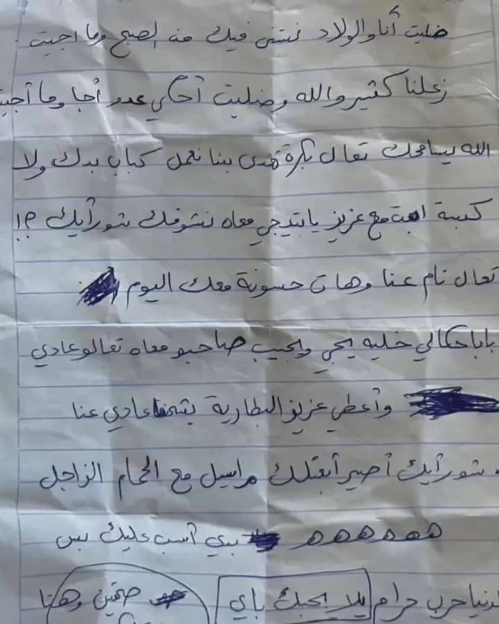 “اترك الماء حتى يجف. زعلانا جدا والله، وبقيت أتكلم مع عدو وأنت لم تأت. فليغفر لك الرب. تعال غدا غدا معنا. سنعمل الكباب أو الكبسة. تريدها أم كبسة؟ أرسل مع عزيز أو تعال معه وسنراك. ماذا تعتقد؟!” تعال نام معنا، وسوف يحضر معك حسونة اليوم.. ما رأيك لو أرسلت لك مراسلات مع الحمام الزاجل؟!”…