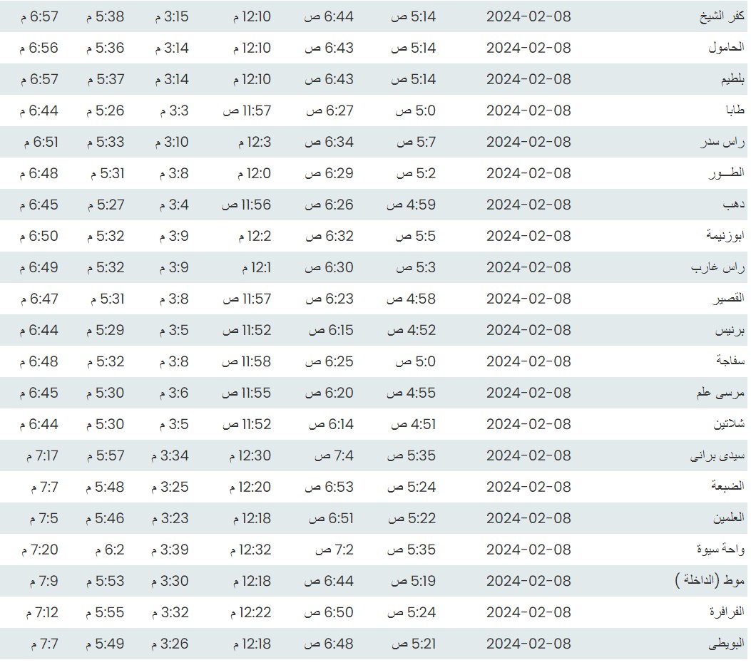 مواقيت الصلاة اليوم هي بتوقيت الإسماعيلية