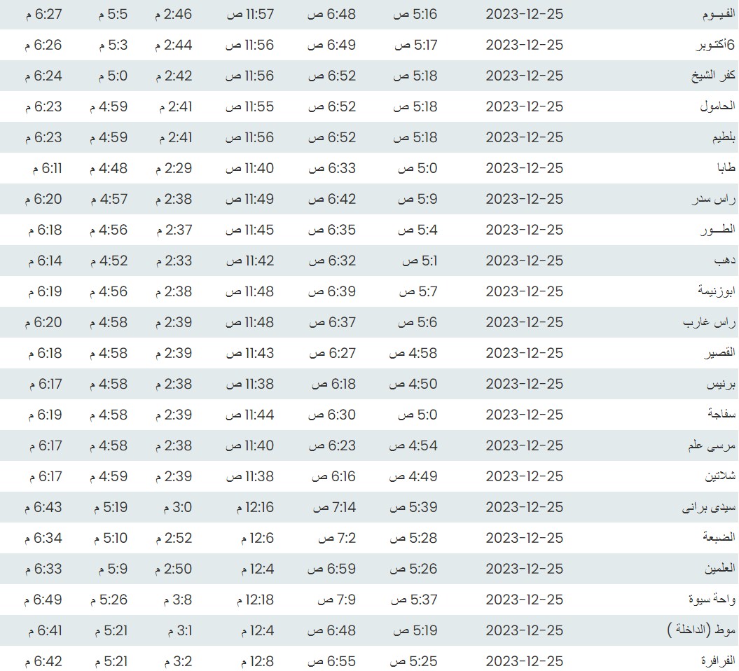 مواقيت الصلاة اليوم هي بتوقيت أسيوط