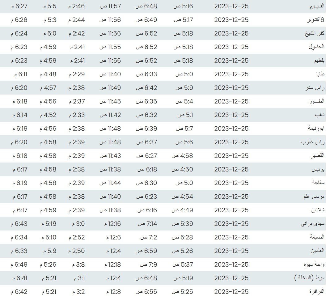 مواقيت الصلاة اليوم هي بتوقيت أسيوط