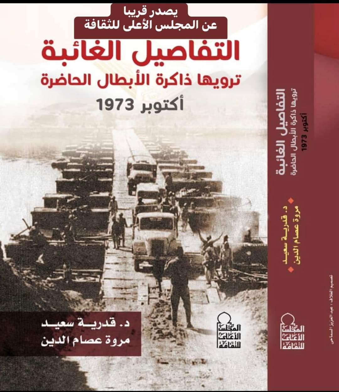 يصدر قريبا عن المجلس الأعلى للثقافة بأمانة الدكتور هشام عزمي. كتاب “تفاصيل غائبة ترويها الذاكرة الحاضرة للأبطال” من إعداد وتقديم الدكتورة قدرية سعيد، الكاتبة مروة عصام الدين، والغلاف من تصميم الفنان عبد العزيز السماحي.